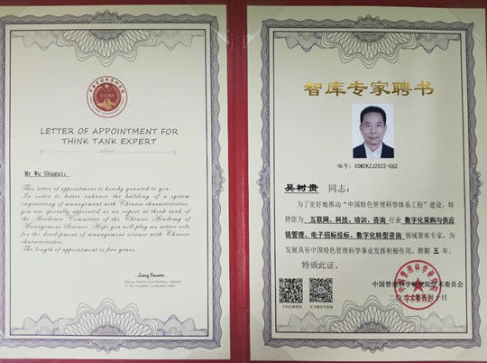 为贯彻新时期数字化发展新理念,构建管理领域数字化发展新格局,中国管理科学研究院学术委员会(以下简称“中管院学术委员会”)基于在新经济领域内的专业性、权威性、影响力等标准,新增了智库专家组成员。隆道公司和必联公司总裁吴树贵先生被选聘为互联网行业数字化采购与供应链管理等领域的智库专家,聘期五年。